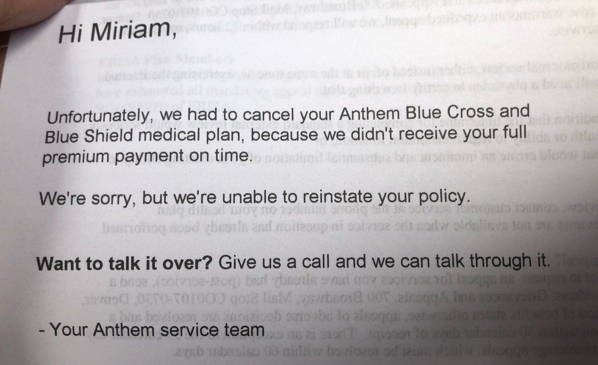 Update: Anthem has cancelled the service I didn't have, so. cool.