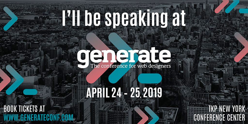 I’ll be speaking at #generateconf NY in April, with some other fabulous folx. Find me at: – "Advanced CSS" workshop on the 24th – "Dynamic CSS" talk on the 25th Visit