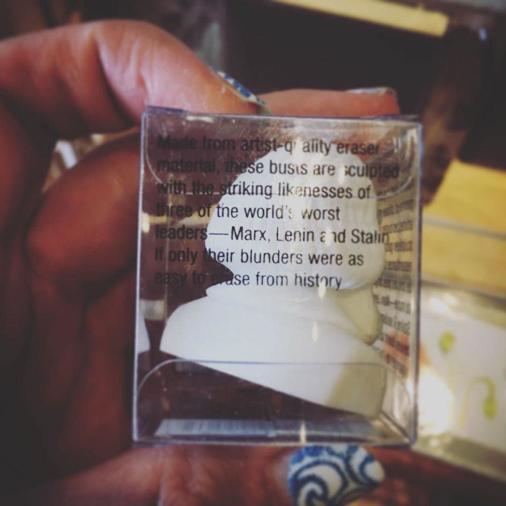 I found this in a store. It's an eraser, but also the "bust of a dictator" - in this case Karl Marx, obviously. Remember when he... dictate…